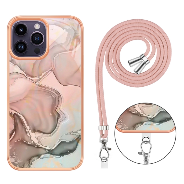 Funda para Teléfono iPhone 15 Pro Max Galvanoplastia Imd TPU con Cordón (Oro Rosa)