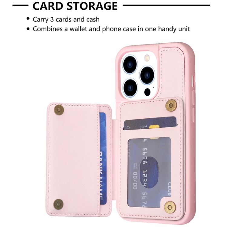 Funda para Teléfono iPhone 15 Pro Max Grid Ranura para Tarjeta (Rosa)