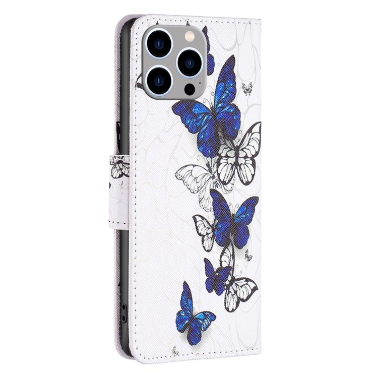 Funda de Cuero para Teléfono iPhone 15 Pro Max Flip Patrón de Dibujo Coloreado (Mariposas)