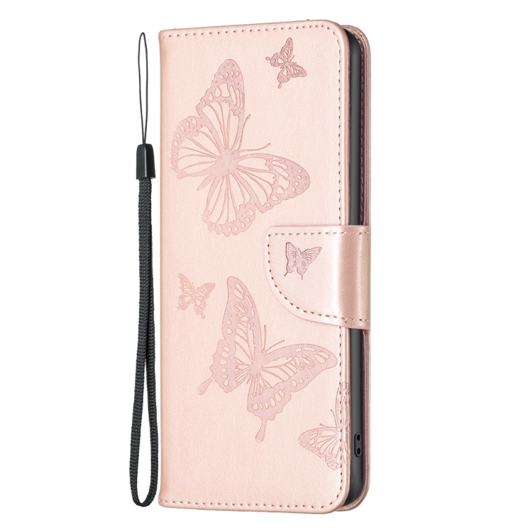 Funda para iPhone 15 Pro Max Cuero Relieve Dos Mariposas Patrón (Oro Rosa)