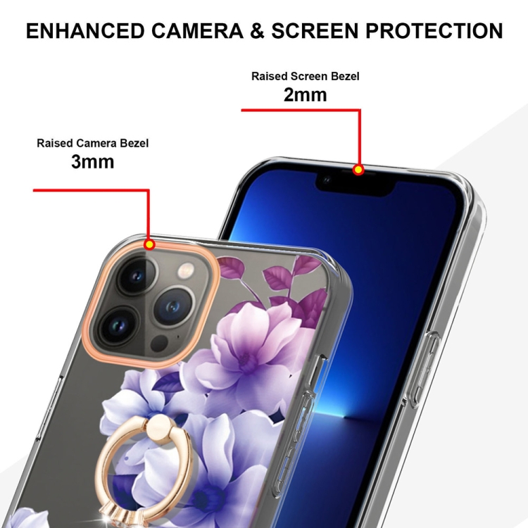 Funda de teléfono TPU Ring Imd Flores para iPhone 15 Pro Max (Púrpura Begonia)