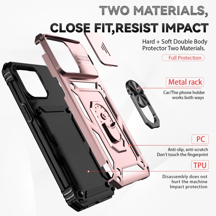 Funda para teléfono iPhone 15 Pro Max Sliding Camshield Holder (Oro Rosa)