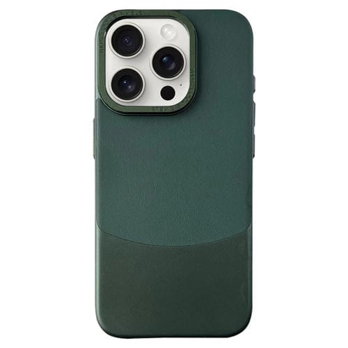 Funda para iPhone 15 Pro Napa Texture PC con Funda de Cuero para Teléfono (Verde Oscuro)