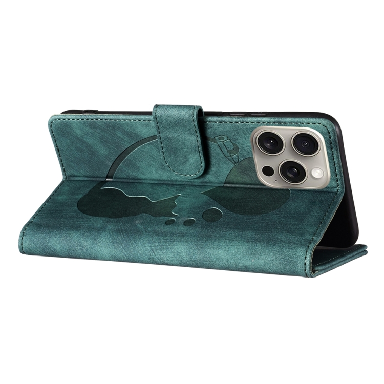 Funda para Teléfono iPhone 15 Pro Pen Heart Cat Cuero En Relieve (Verde)