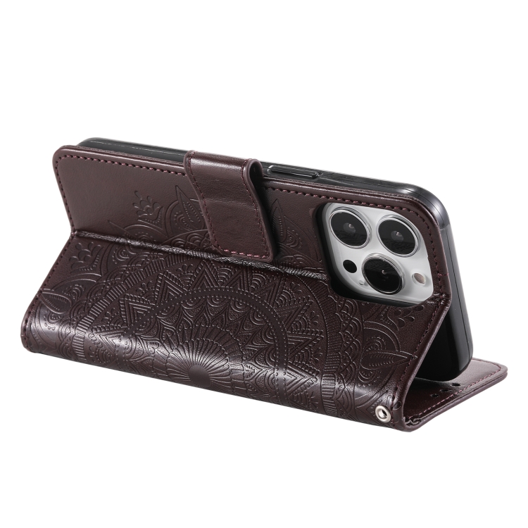 Estuche para Teléfono iPhone 15 Pro Totem Flower Cuero En Relieve (Marrón)