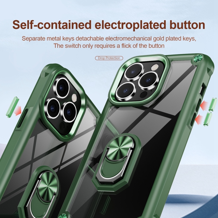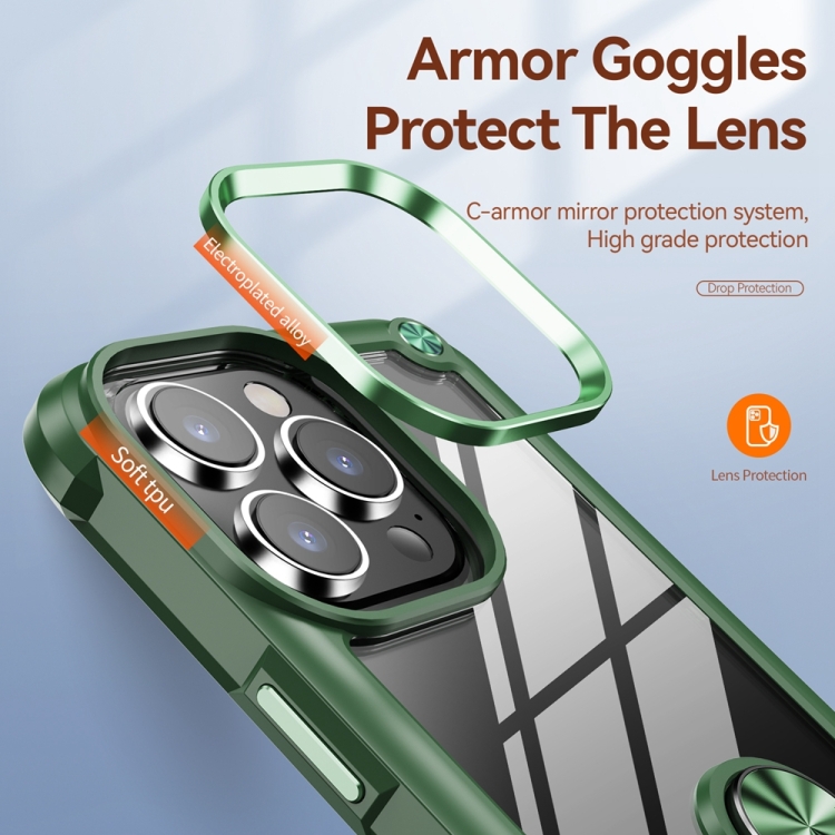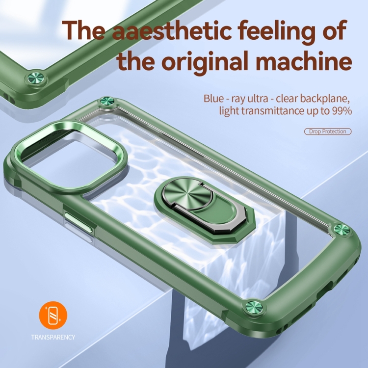 Estuche para Teléfono iPhone 15 Pro TPU + PC con Protección de Lente y Soporte para Anillo (Verde)