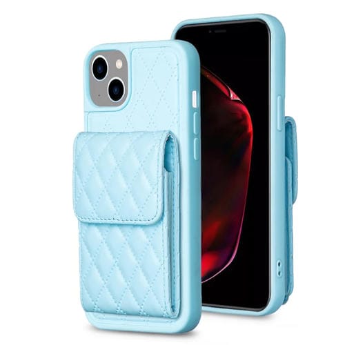 Funda Vertical Wallet para iPhone 15 Rhombic Leather Phone Case (Azul)