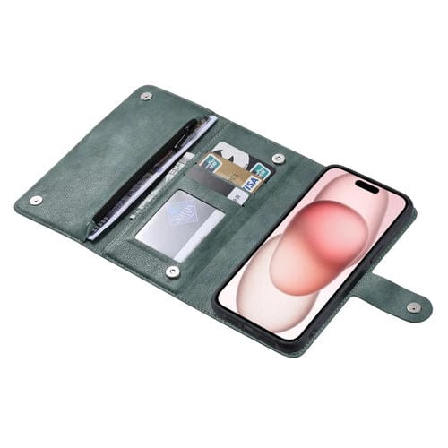Funda para iPhone 15 Vili Gv Series Magsafe Cuero con Cremallera Magnética (Verde)