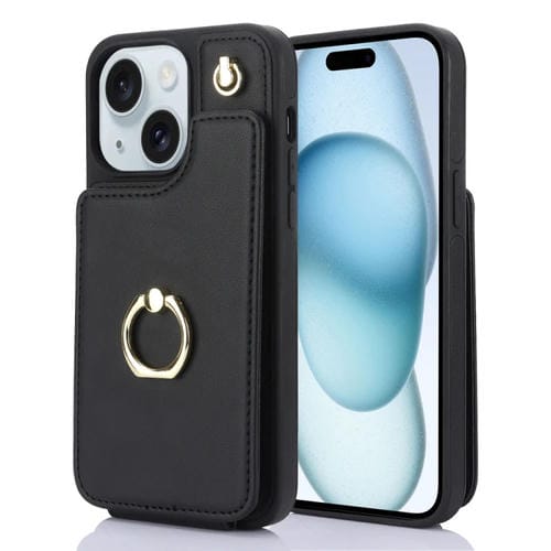 Funda para Teléfono Ym005 Skin Feel Card Bag para iPhone 15 con Cordón Largo (Negro)