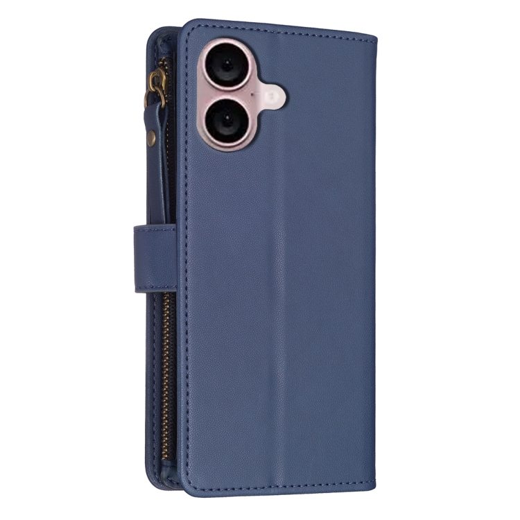 Funda Cartera para iPhone 16 Plus con 9 Ranuras para Tarjetas Cremallera y Tapa (Azul)
