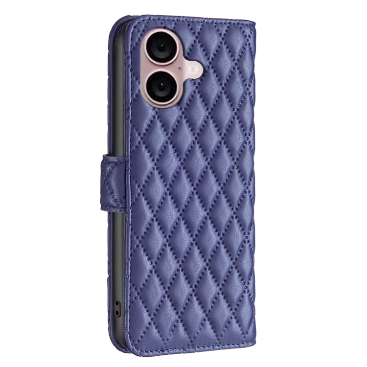Funda de Cuero para iPhone 16 Plus Diamond Lattice con Tapa (Azul)