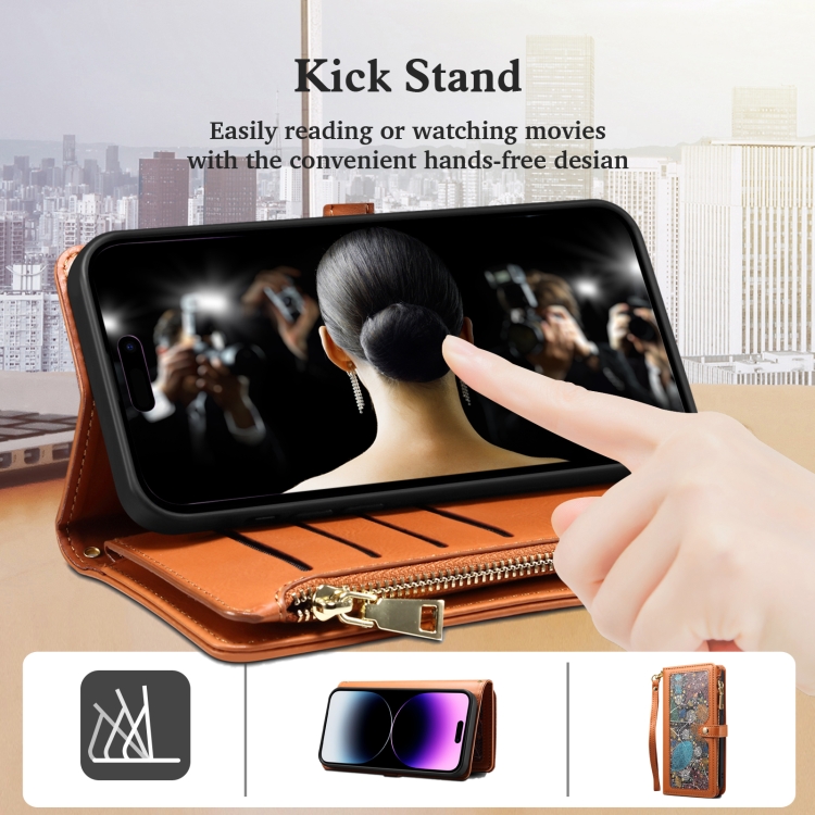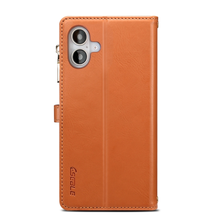 Funda de Cuero Eseble Star Series para iPhone 16 Plus con RFID Billetera Cremallera y Cordón (Marrón)