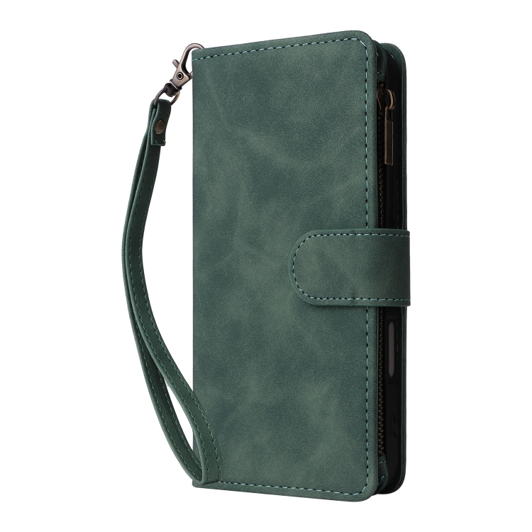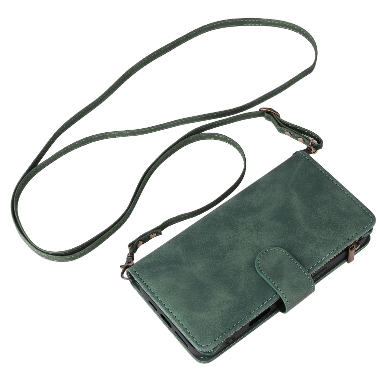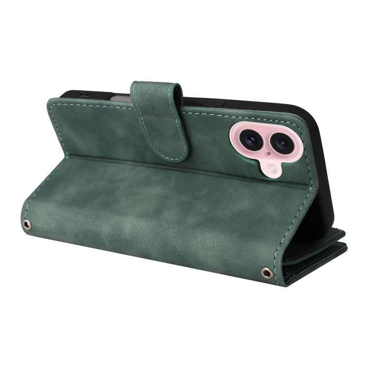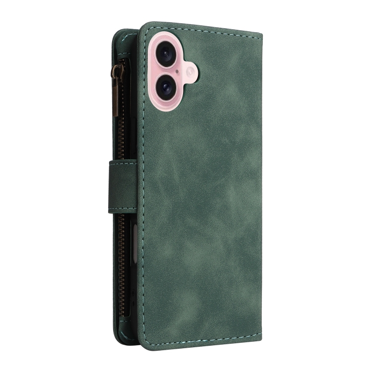 Funda Cruzada de Cuero para iPhone 16 Plus con Cremallera y Ranura para Tarjetas (Verde)
