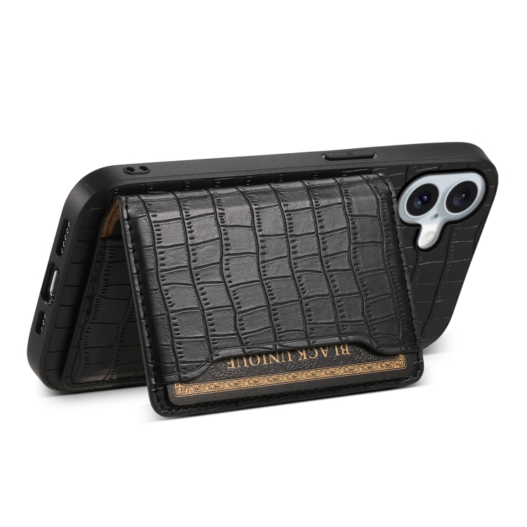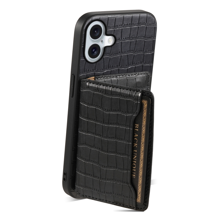 Funda para Teléfono iPhone 16 Plus Diseño Bolsa de Tarjeta Textura Cocodrilo (Negro)