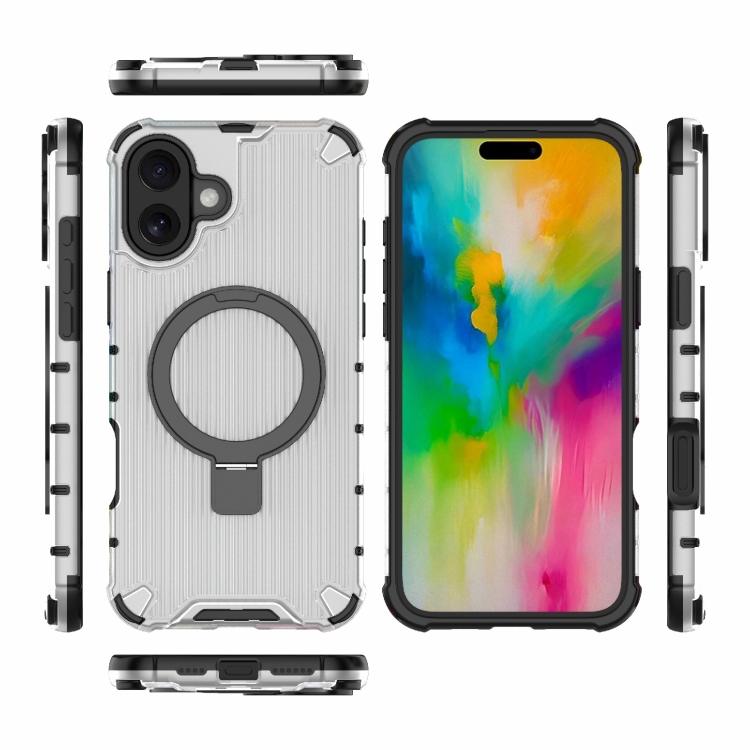 Funda para Teléfono iPhone 16 Plus Soporte Rejilla a Prueba de Golpes (Transparente)