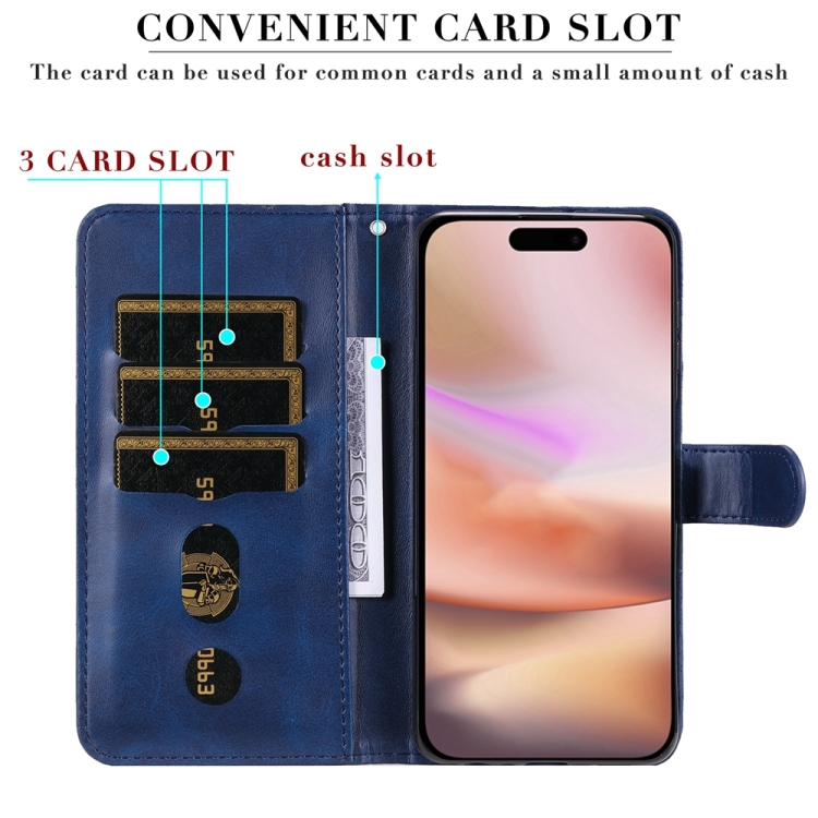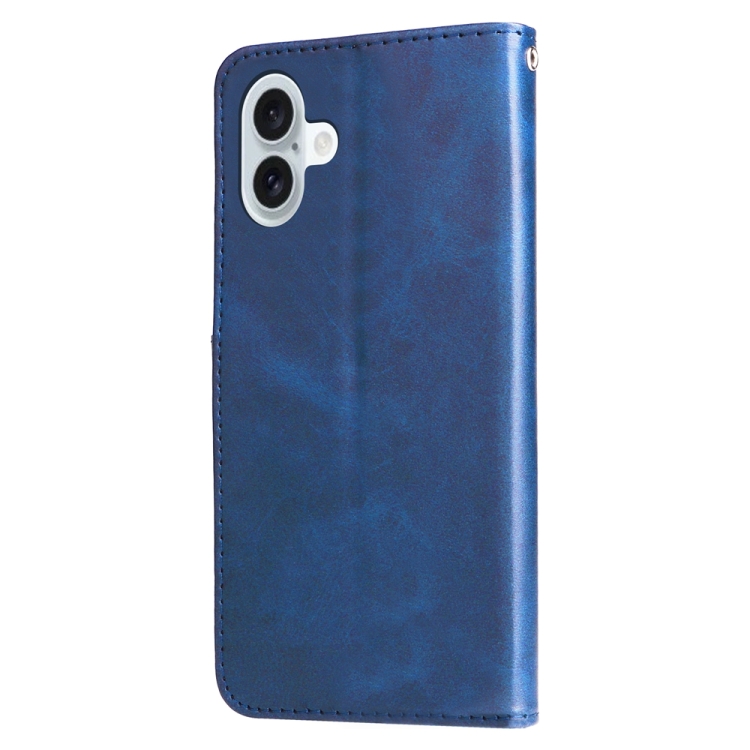 Funda para teléfono iPhone 16 Plus Cuero con Cremallera y Textura de Becerro (Azul)