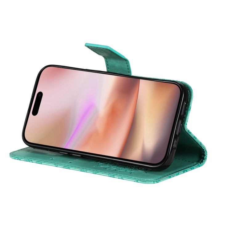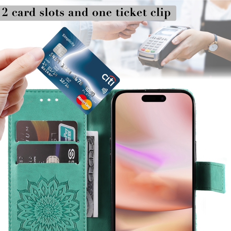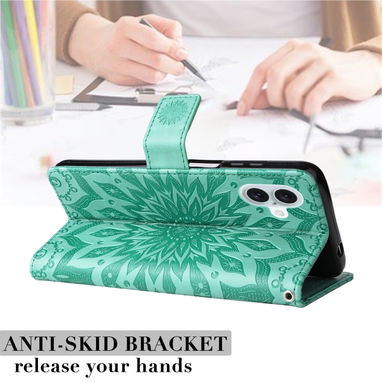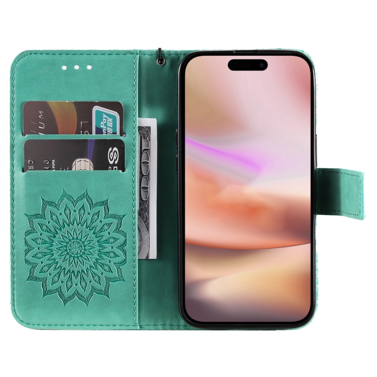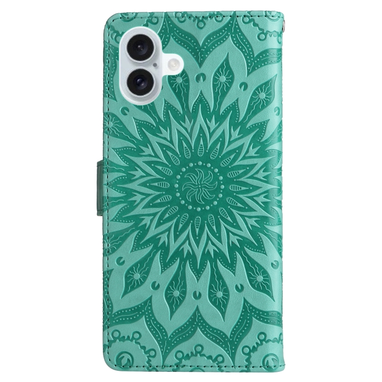 Funda para Teléfono iPhone 16 Plus Cuero con Tapa Patrón Girasol en Relieve (Verde)