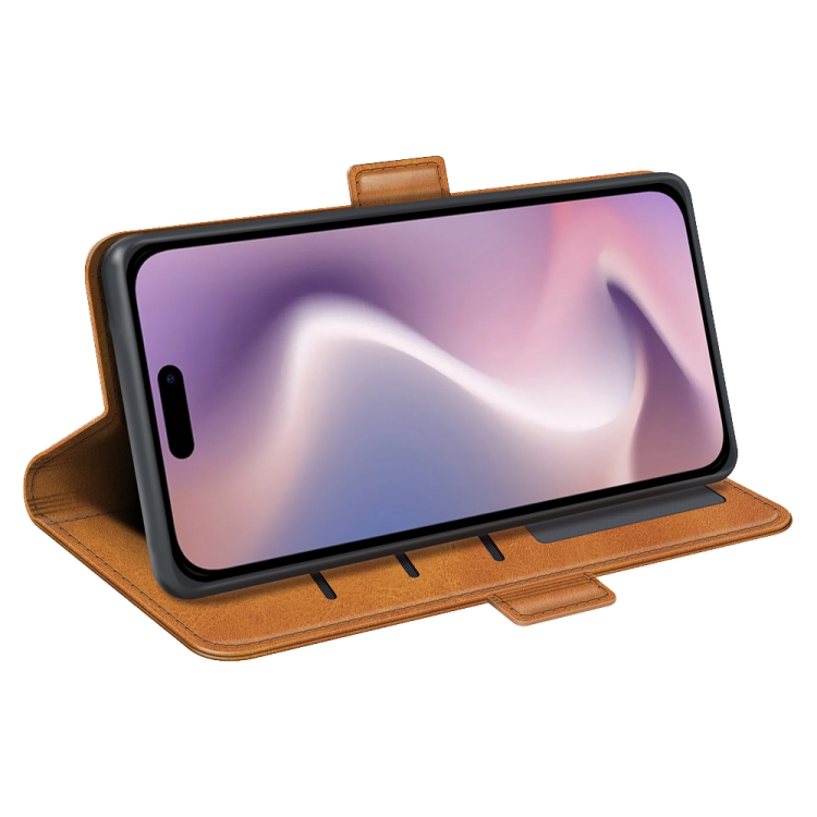 Funda para Teléfono iPhone 16 Plus Cuero con Tapa Horizontal y Hebilla Magnética Doble Lado (Amarillo)