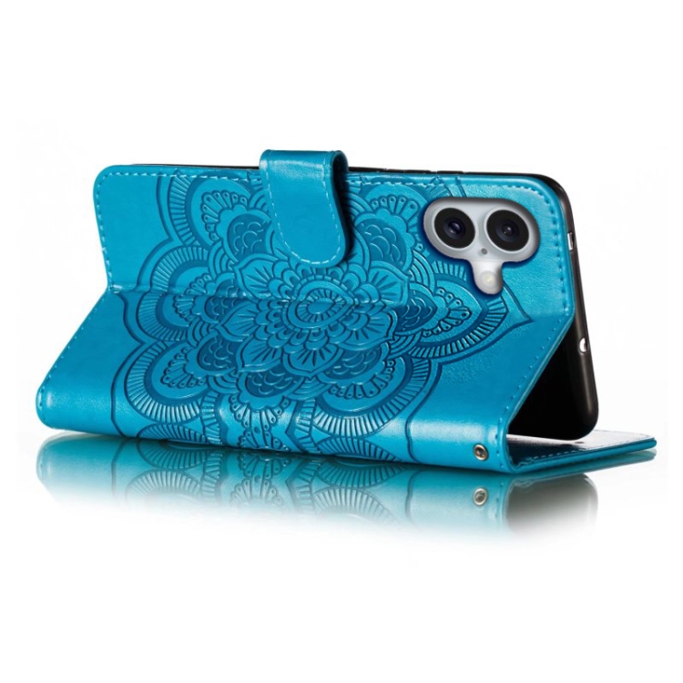 Funda para Teléfono iPhone 16 Plus Cuero Tapa Horizontal Patrón Relieve Mandala (Azul)