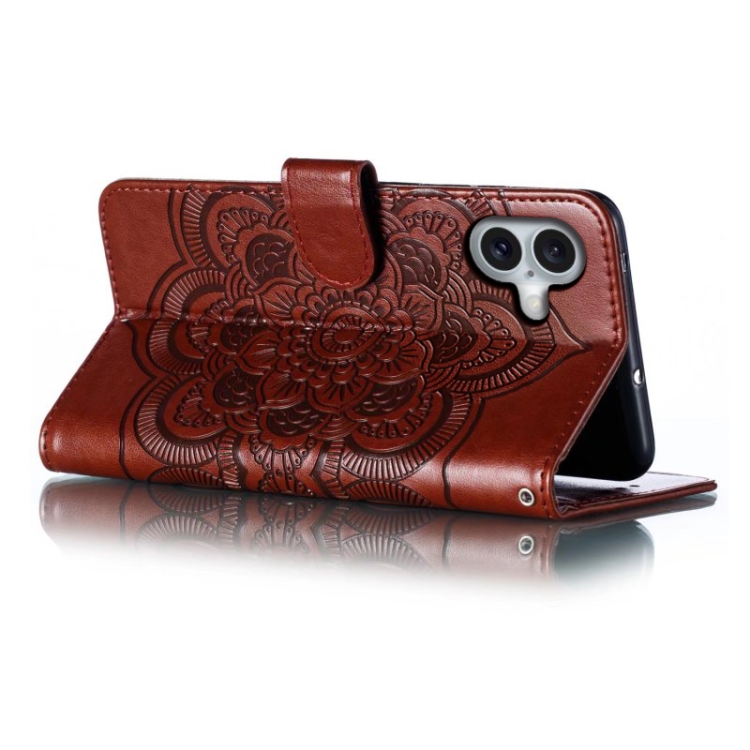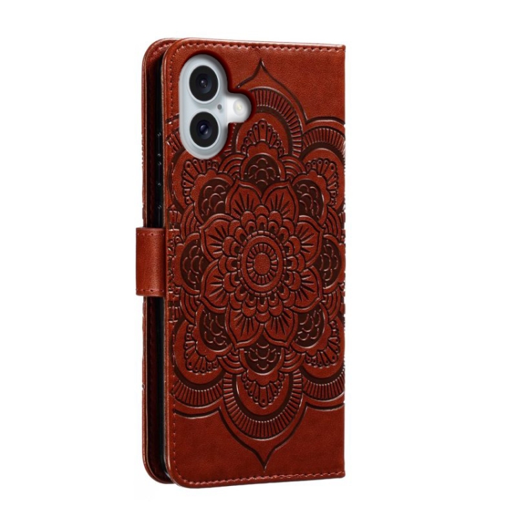 Funda para Teléfono iPhone 16 Plus Cuero con Tapa Horizontal y Patrón de Relieve Mandala (Marrón)