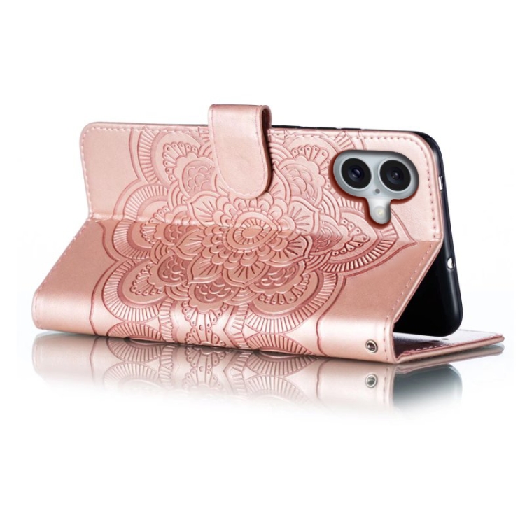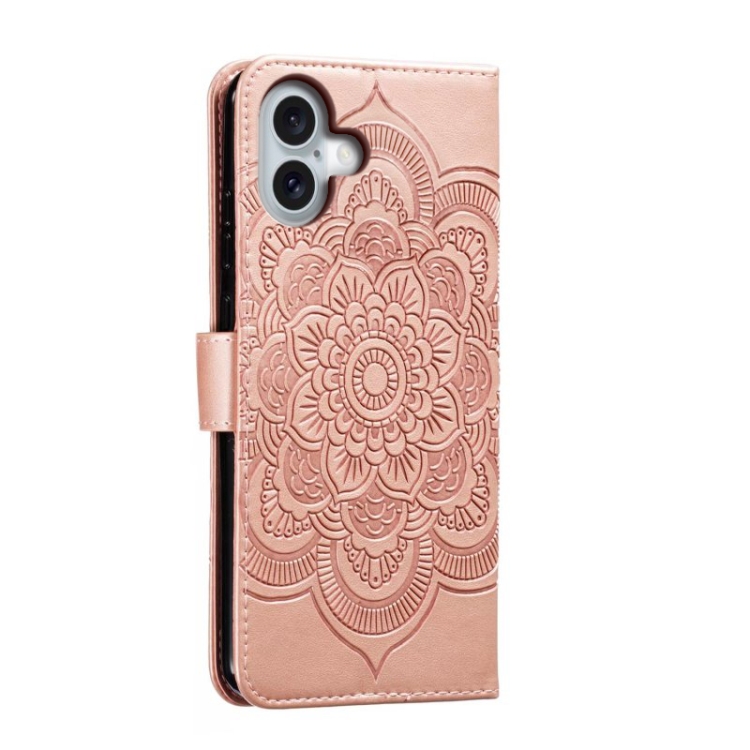 Funda para Teléfono iPhone 16 Plus Cuero con Tapa Horizontal y Patrón de Relieve Mandala (Oro Rosa)
