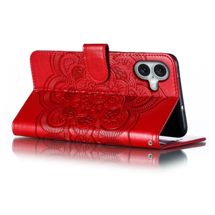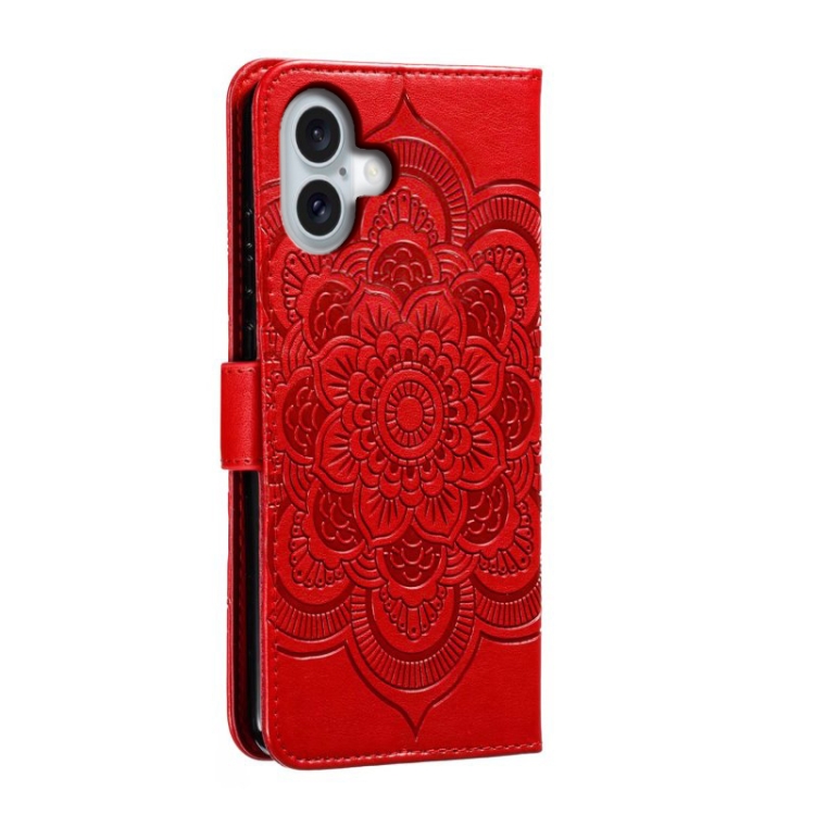 Funda para Teléfono iPhone 16 Plus Cuero Tapa Horizontal Patrón Mandala (Rojo)
