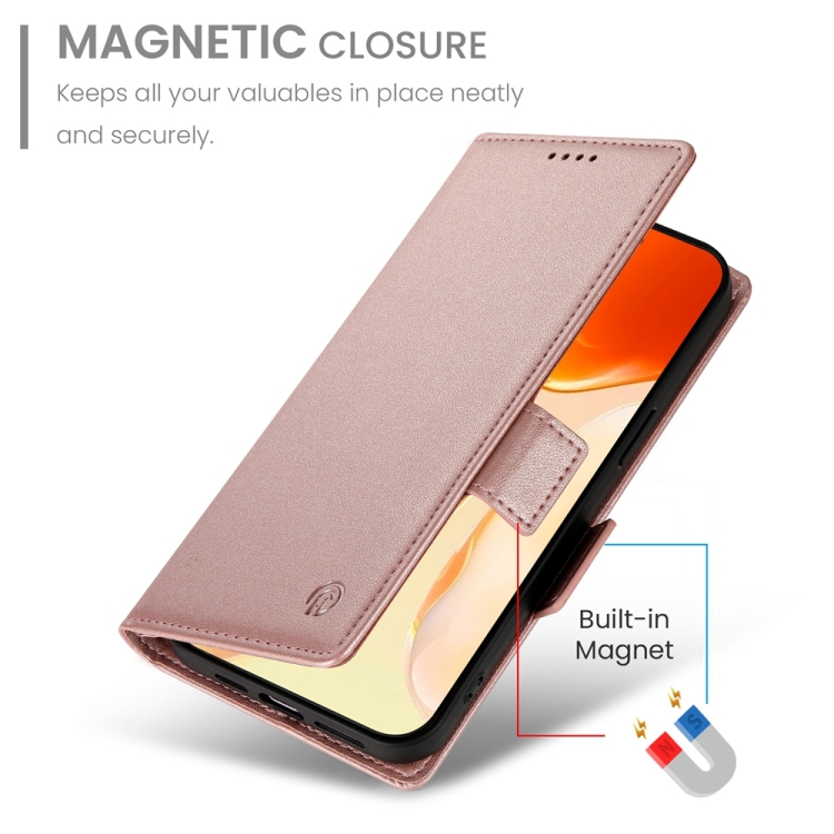 Funda para Teléfono iPhone 16 Plus Cuero Esmerilado Magnético con Hebilla Lateral (Oro Rosa)