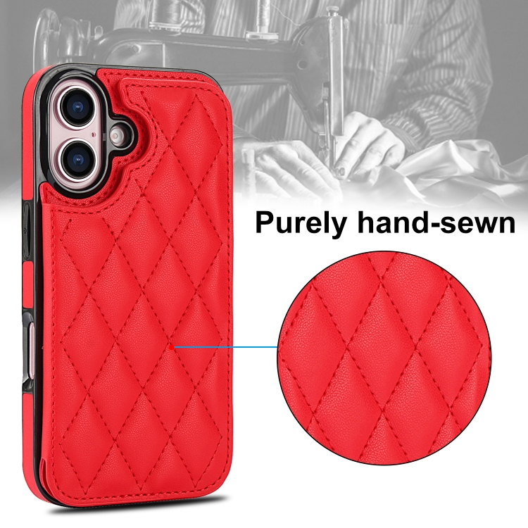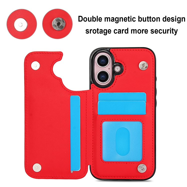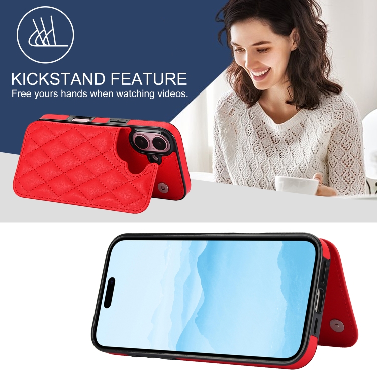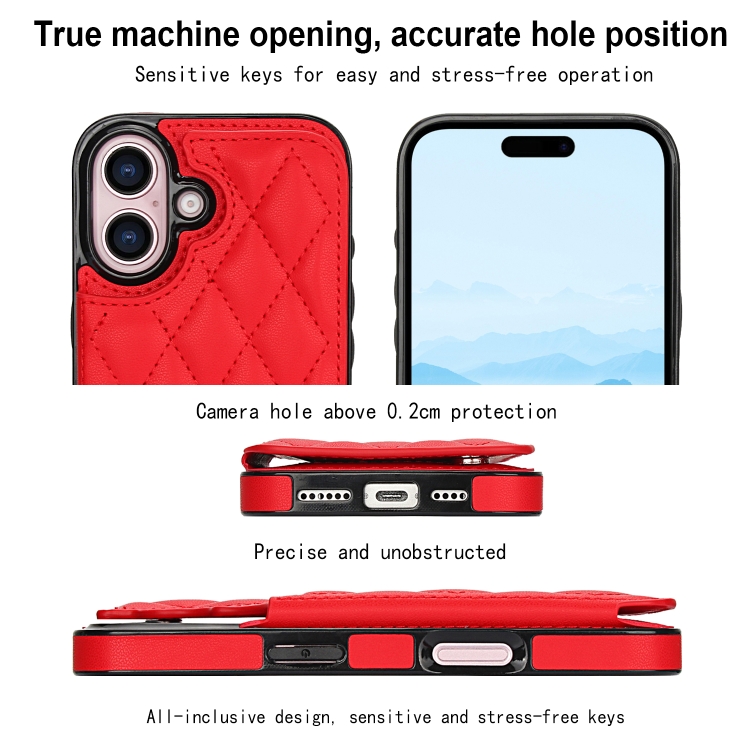 Funda para Teléfono iPhone 16 Plus Cuero Pu Rombal Doble Hebilla (Rojo)