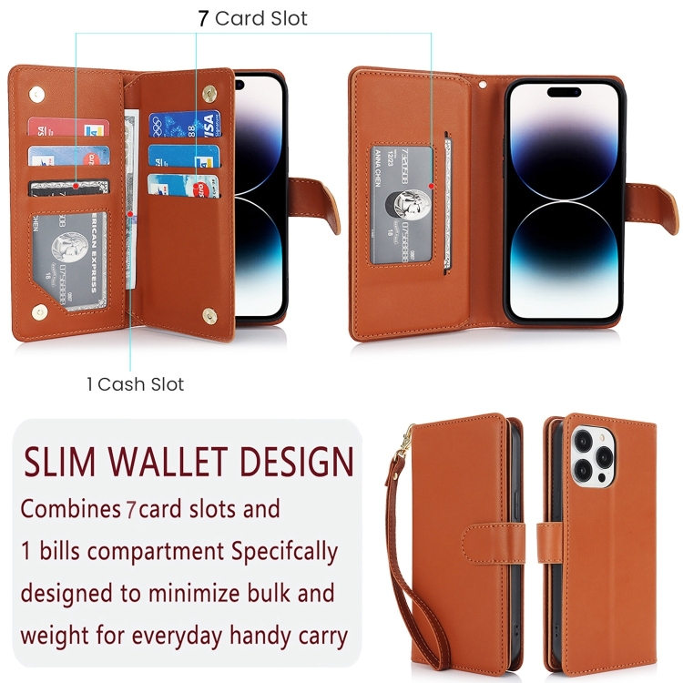 Funda para Teléfono iPhone 16 Plus Cuero Rfid con Billetera MultiTarjeta (Marrón)
