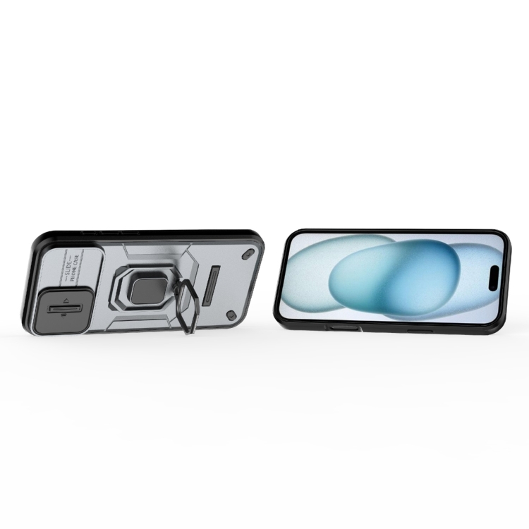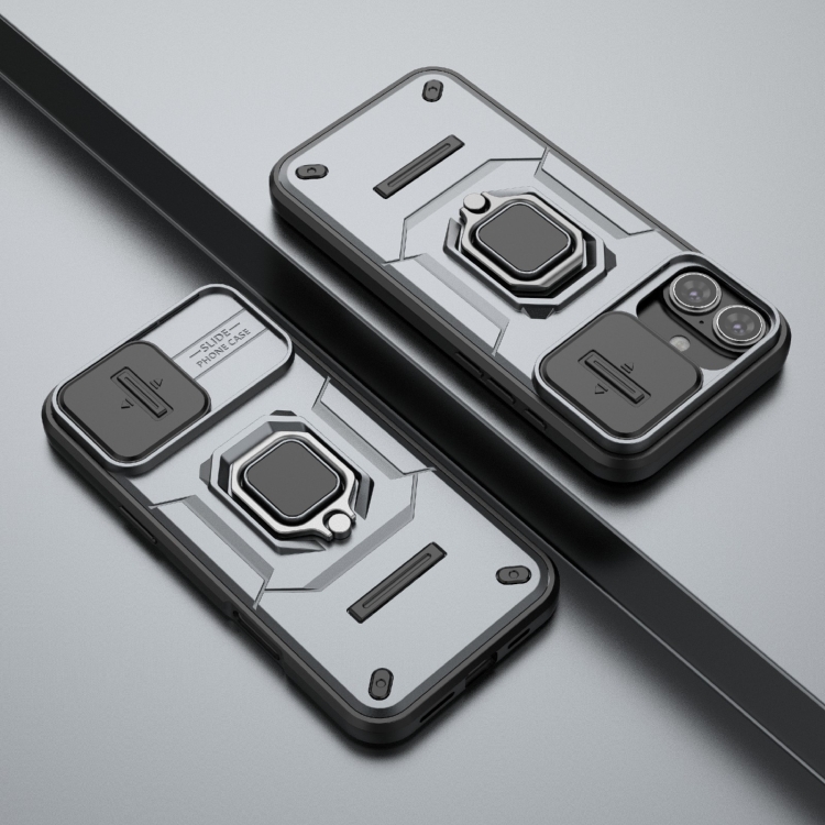 Funda para Teléfono iPhone 16 Plus Sliding Camshield TPU + PC a Prueba de Golpes con Soporte (Gris)
