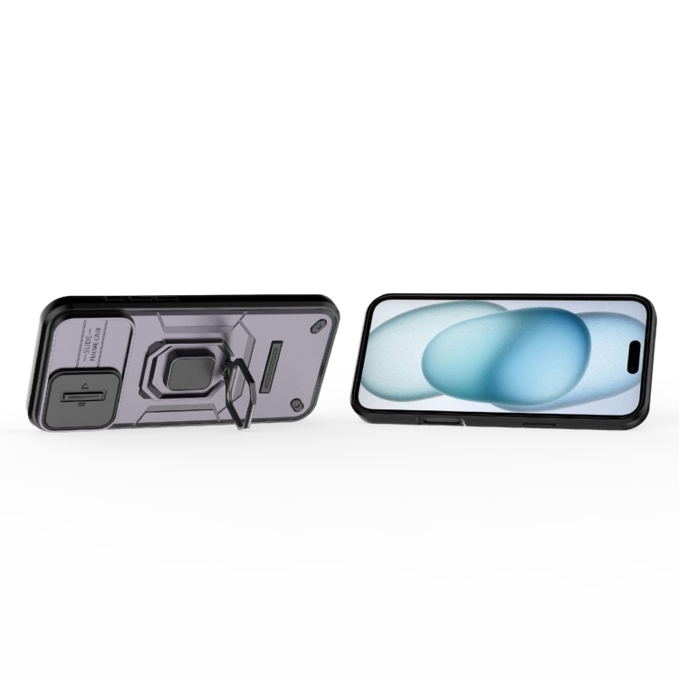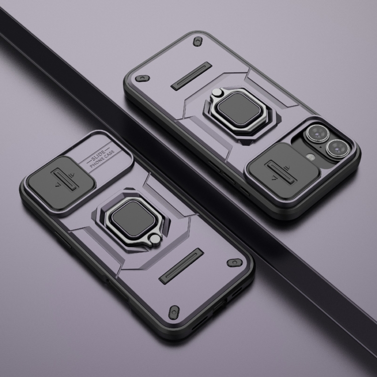 Funda para Teléfono iPhone 16 Plus Sliding Camshield TPU + PC a Prueba de Golpes con Soporte (Púrpura)