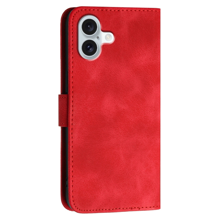 Funda de Cuero para iPhone 16 Plus Yx0080 con Tapa y Cordón Diseño Mariposa y Cuadrícula (Rojo)