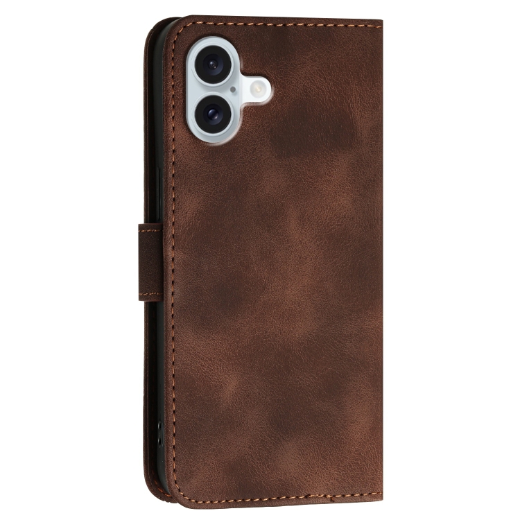 Funda de Cuero para iPhone 16 Plus Yx0080 con Tapa y Cordón Diseño Mariposas y Cuadrícula (Café)