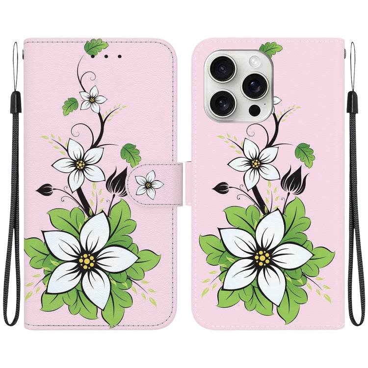 Funda para Teléfono iPhone 16 Pro Cuero Dibujo Coloreado Textura de Cristal (Lily)