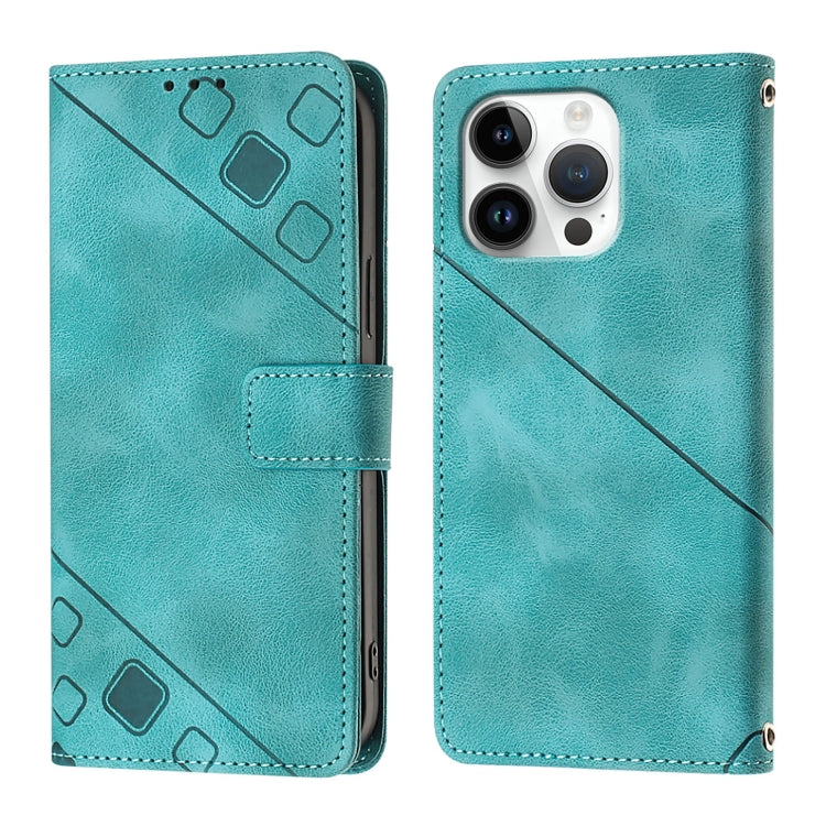 Funda para iPhone 16 Pro Max Cuero con Relieve y Sensación de Piel (Verde)