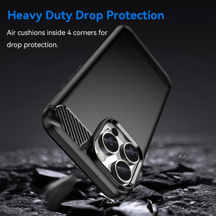Funda para Teléfono TPU Fibra de Carbono iPhone 16 Pro Max Textura Cepillada (Negro)