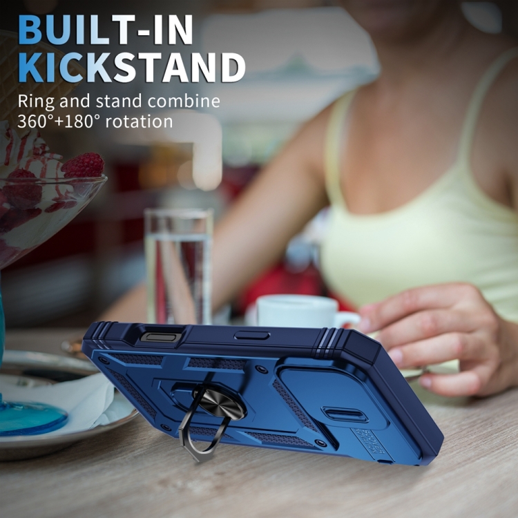 Funda para Teléfono iPhone 16 Pro Max Sliding Camshield TPU + PC con Soporte (Azul Marino)
