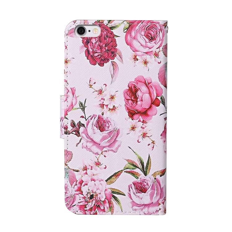 Estuche de Cuero Abatible Horizontal para iPhone 6 / 6S con Patrón Coloreado, Soporte, Ranuras para Tarjetas y Billetera (Peony)