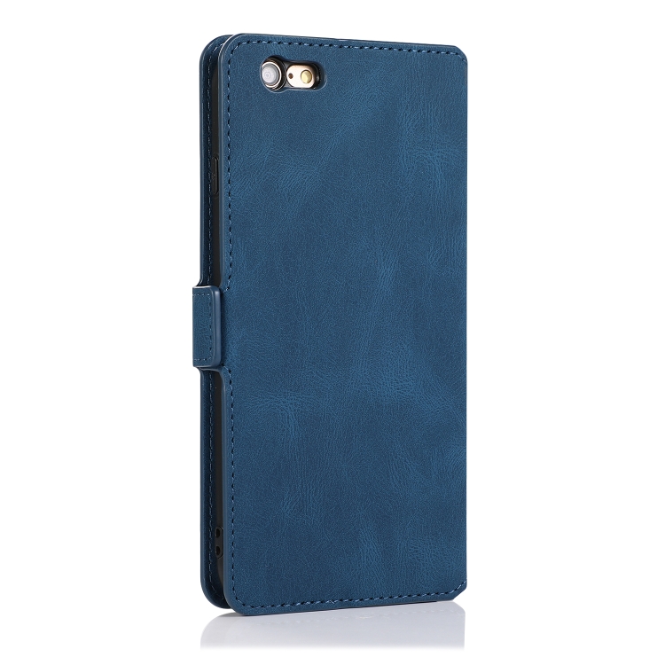 Estuche de Cuero Abatible Horizontal para iPhone 6 con Cierre Magnético Soporte Ranuras y Billetera (Azul Marino)