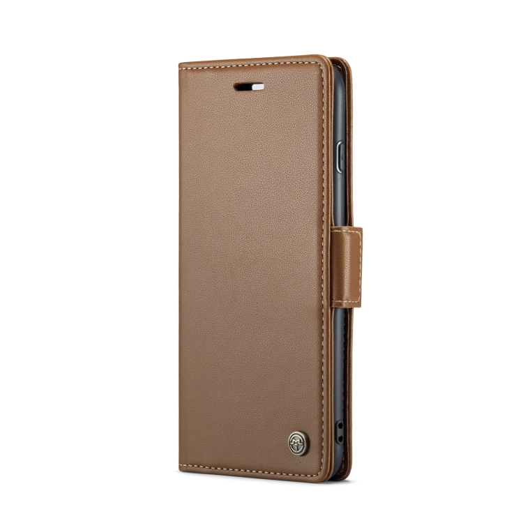 Funda de Cuero Caseme 023 para iPhone 6 Plus/7 Plus/8 Plus Mariposa Hebilla Litchi Textura Rfid (Marrón)