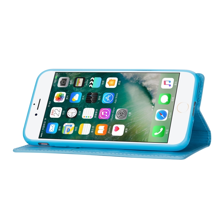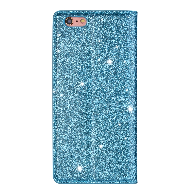 Estuche de Cuero para iPhone 6 Plus con Tapa Horizontal Magnética Ultradelgada Purpurina Soporte y Ranuras para Tarjetas (Azul Cielo)