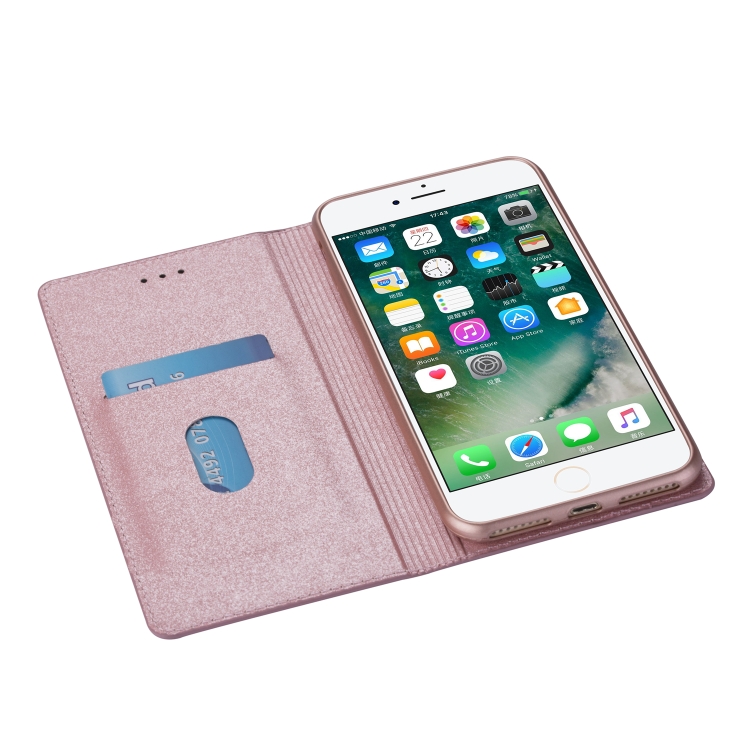 Estuche de Cuero para iPhone 6 Plus con Tapa Horizontal Magnética Ultrafina con Purpurina Soporte y Ranuras para Tarjetas (Oro Rosa)