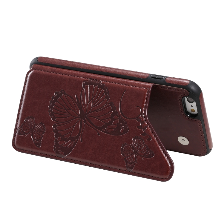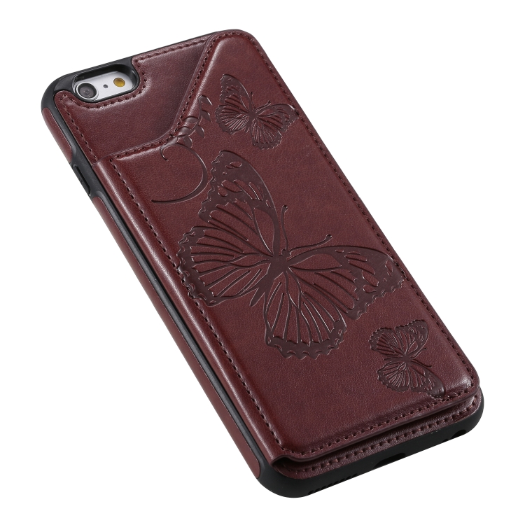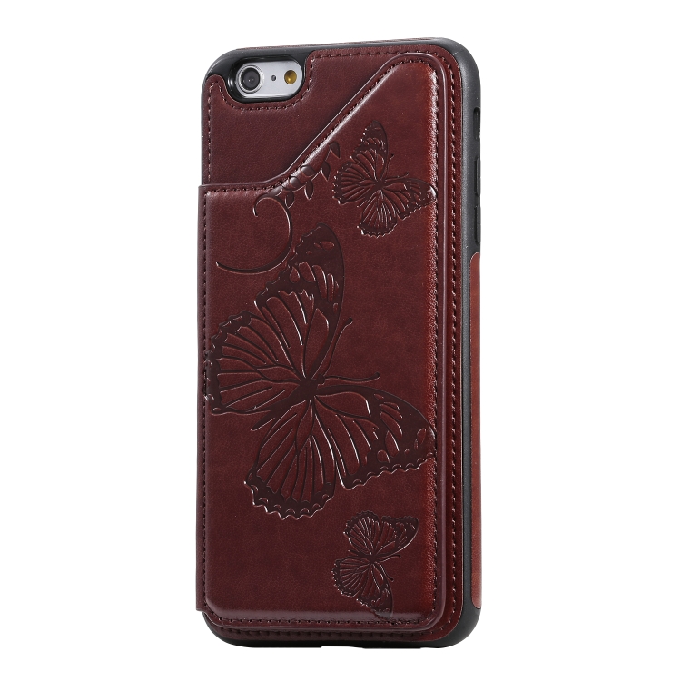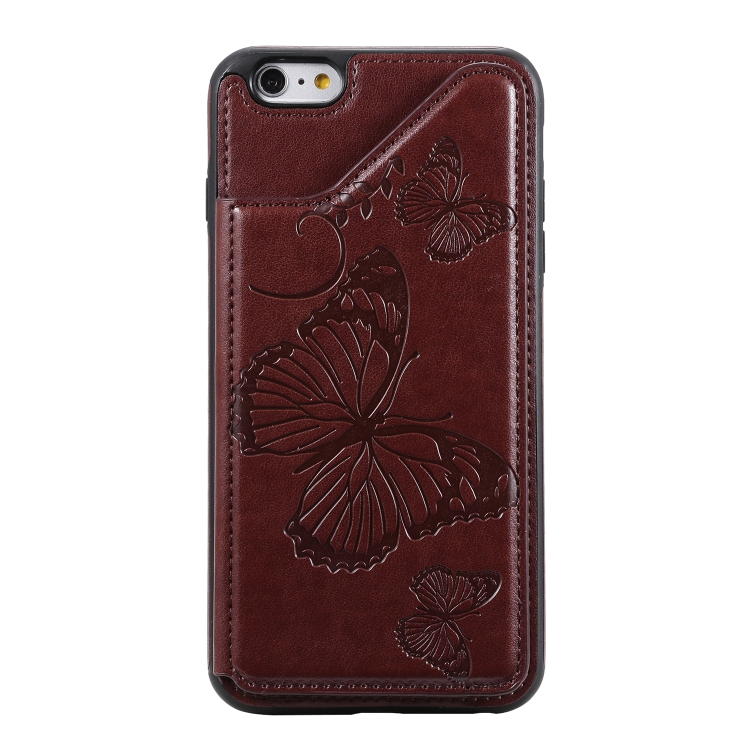 Funda Protectora iPhone 6 Plus Estampado Mariposa con Soporte y Ranuras para Tarjetas (Marrón)
