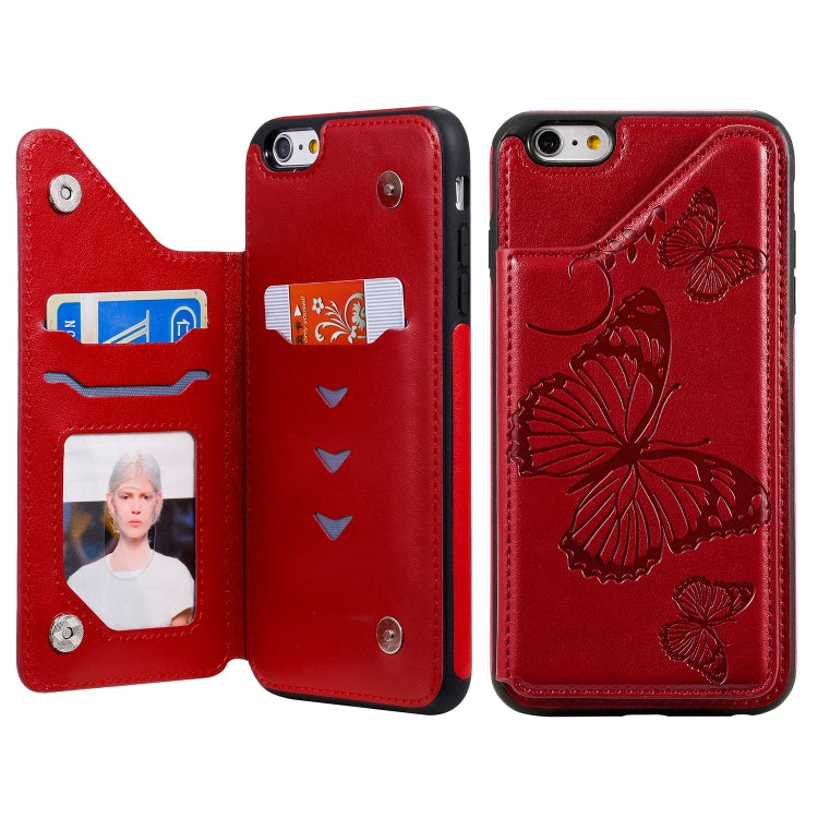 Funda Protectora iPhone 6 Plus Estampado Mariposa Soporte Ranuras Tarjetas Marco Fotos (Rojo)