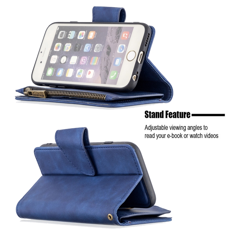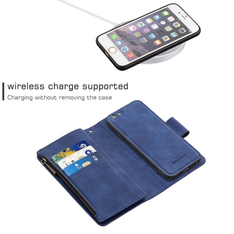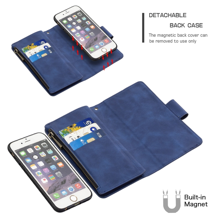 Estuche para iPhone 6 Skin Feel Cuero PU con Cremallera Magnética Desmontable Tapa Horizontal Ranuras y Soporte (Azul)