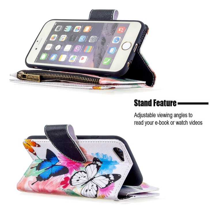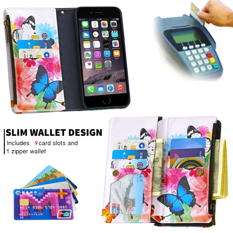 Funda de Cuero iPhone 6S y 6 con Tapa Horizontal Soporte Ranuras Tarjetas Billetera (Dos Mariposas)