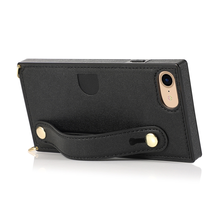 Correa de Muñeca PU + Estuche TPU para iPhone 7/8/SE 2020 a Prueba de Golpes con Cordón Cruzado Soporte y Ranura para Tarjeta (Negro)
