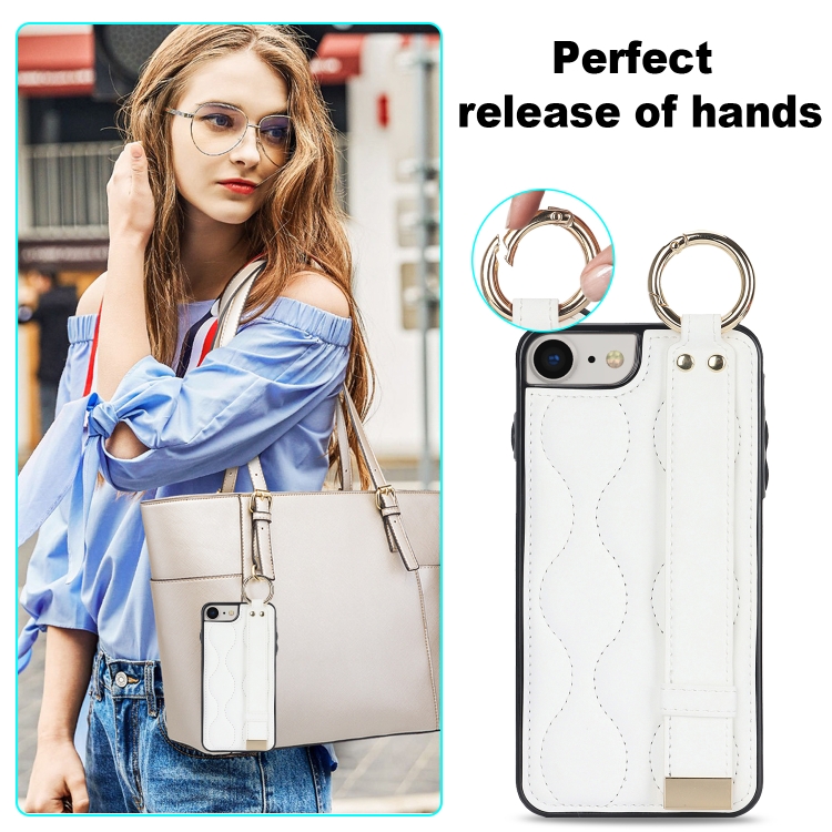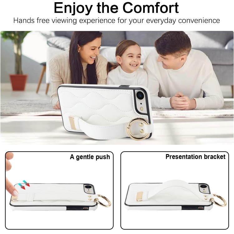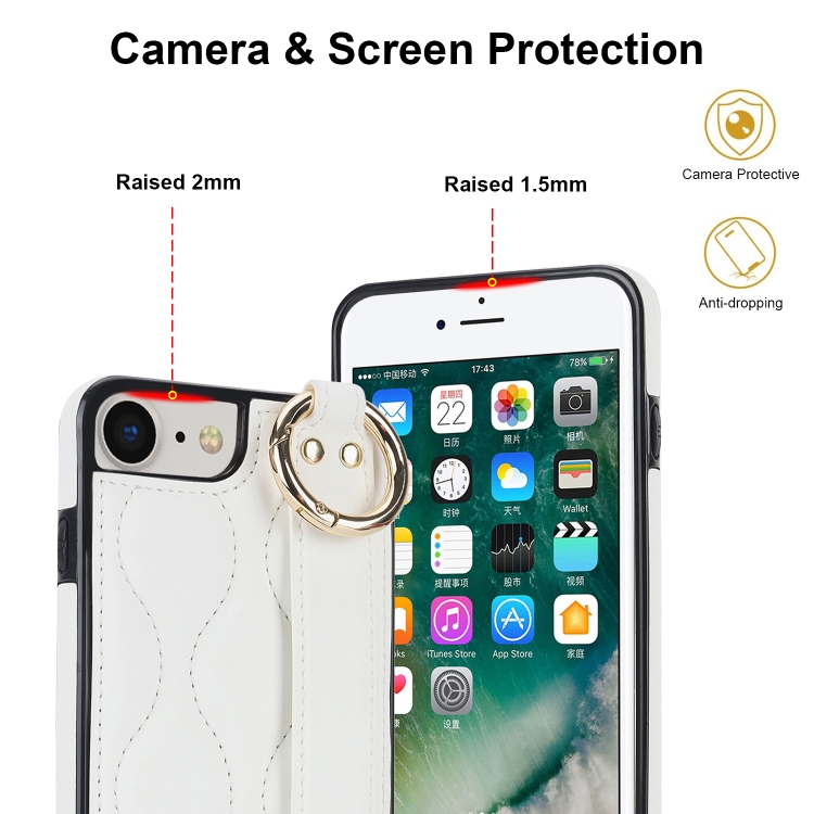 Funda para iPhone 7 Antideslizante Cobertura Completa Anillo PU con Muñequera (Blanco)