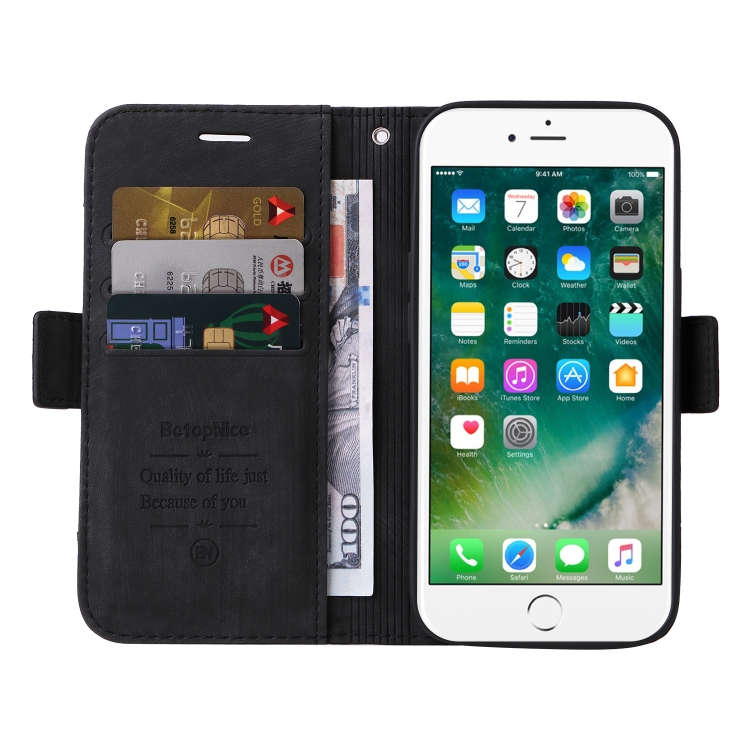 Estuche para Teléfono Betopnice iPhone 7 Plus 8 Plus Cuero Hebilla Doble Cara (Negro)