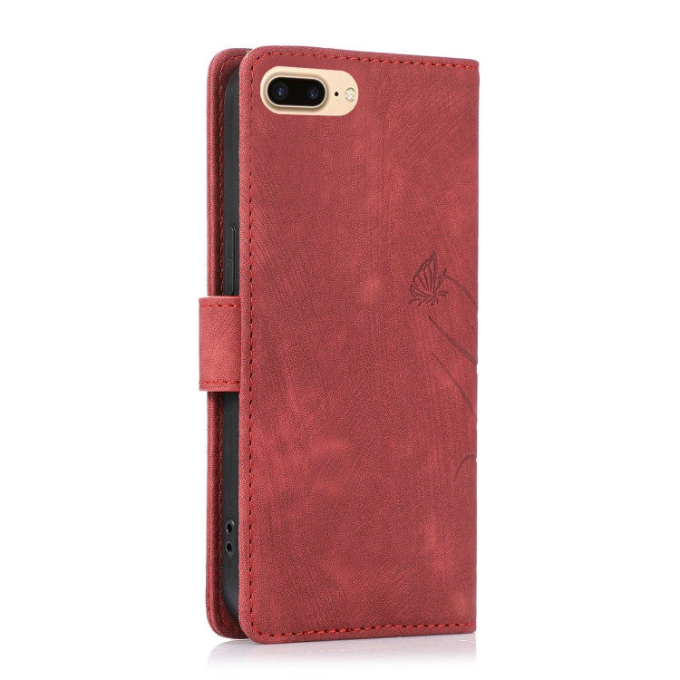 Funda para Teléfono iPhone 7 Plus/8 Plus Cuero Relieve Mariposa Orquídea (Rojo)
